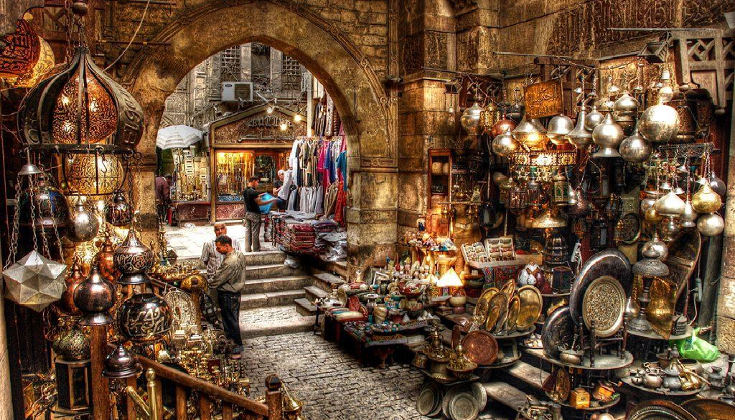 Then off to visiting "Saint Sergius and Bacchus Church ” which is believed to have been built on the spot where the holy family rested at the end of their journey into Egypt. And ending Coptic Cairo tour with a visit to the "Jewish Synagogue of Ben Ezra " which gained its importance from its Geniza (Store room) was found during the 19th century containing a treasure of abandoned Hebrew secular and sacred manuscripts Then moving to "Islamic Cairo " and taking a walking tour in the 1000 years old "el Moez " street which is considered as an open air museum for Terrific Islamic Buildings which are decorated with different patterns and paints, then ending our tour with going to Khan el Khalili Bazaar which is one of Cairo's main attractions. The district of Khan el Khalil was originally a mausoleum called "el Zaafran" for the burial of Fatimid Caliphs, after that it became a district for the Turkish community during the Ottoman period, and now it becomes a bazaar where you will find many souvenirs shops, coffeehouses "Café" serving Arabic coffee and offering Hookah "Shisha", and restaurants throughout the area. Take out your cameras and take many pictures.